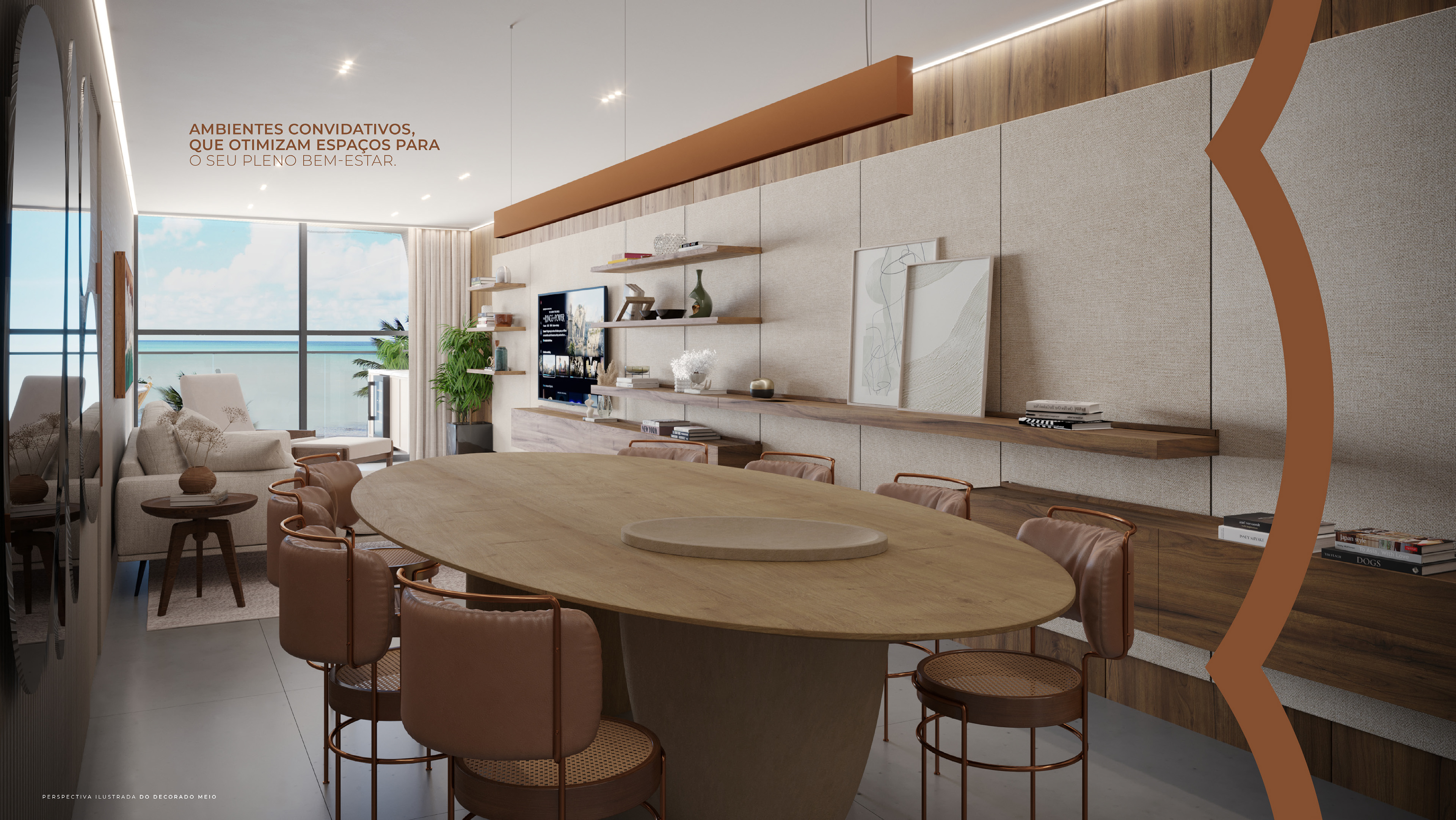 Aqui, os tons do mar se revelam aos pés, o vento se traduz em som e movimento, e o olhar alcança além do que nos cerca. Uma sensação contínua de flutuar, de pertencer à leveza do design aliada a uma arquitetura sensorial, onde forma, função e emoção coexistem no mesmo ambiente.
